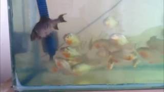 Ikan emas dikeroyok ikan piranha